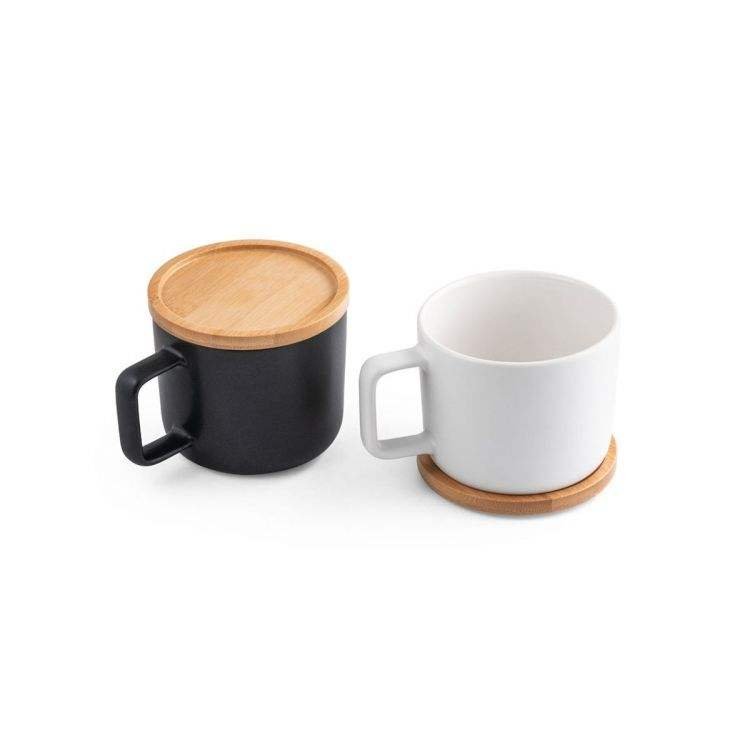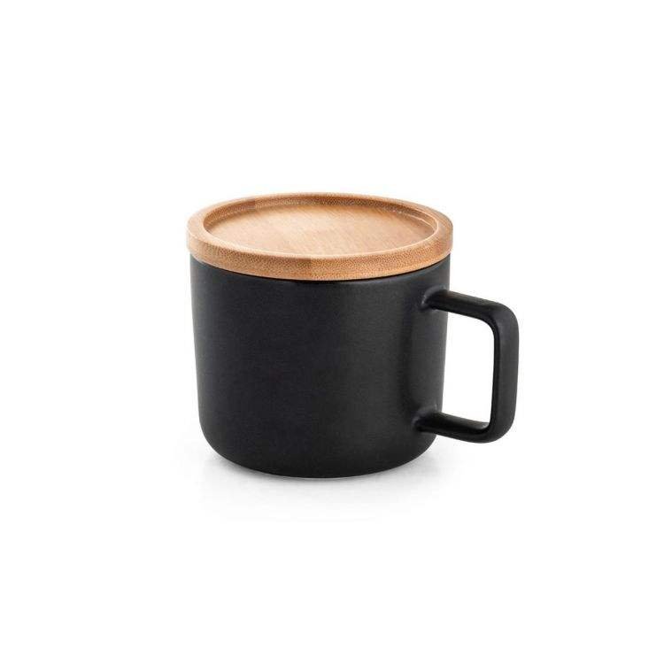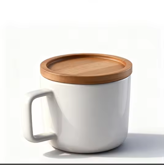 Modern Design 300mL Ceramic Mug with Bamboo Base Lid